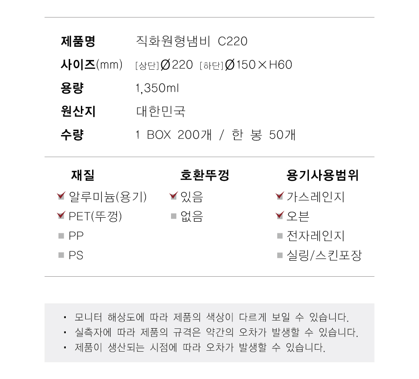 알루미늄(용기)/PET(뚜껑)